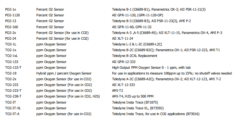 6P : (PO2-24): 0 - 1%, 0 - 5%, 0 - 10%, 0 - 25%, 0 - 100%                                  (酸性氣體CO2>0.5%)